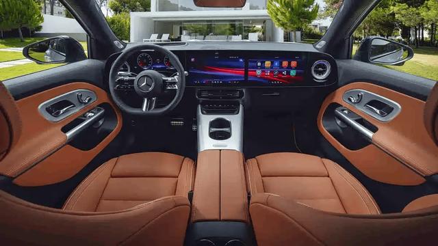 进入车内,豪华感与科技感的提升更为明显。新一代GLB的座舱核心是一套由10.25英寸全液晶仪表、14英寸中控触摸屏及可选装的14英寸副驾娱乐屏组成的全新大联屏,官方称之为“奔驰超级屏幕”。其图形界面由游戏引擎驱动,流畅度和视觉效果有显著提升,车机内部搭载了奔驰最新的第四代MBUX智能交互系统,并内置了基于ChatGPT4o大模型开发的MBUX虚拟助手,人机交互不再局限于刻板的指令,而是能够进行更自然、多轮次的对话。